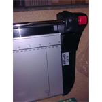 Kvalitní kolečková řezačka s pevnou kovovou základnou a řeznou hlavou umístěnou na kovové tyči, určena pro formát A3. Pracovní stůl je vybaven natištěnými měřítky a přítlačnou lištou z průhledného plastu.