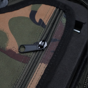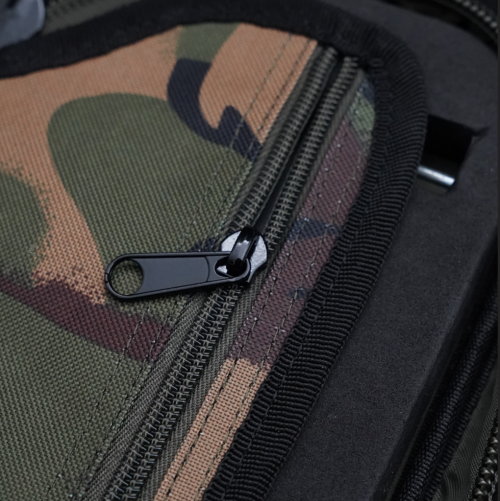 Uzamykatelná přihrádka pro bezpečné uložení drobných komponentů. Tuhá vnitřní vrstva EVA s kolíky (součástí balení) pro fixaci návazců, která zabraňuje pohybu a poškození obsahu. Odolný materiál DPM kamufláž 600D, který zajišťuje dlouhou životnost a odolnost vůči povětrnostním vlivům.
