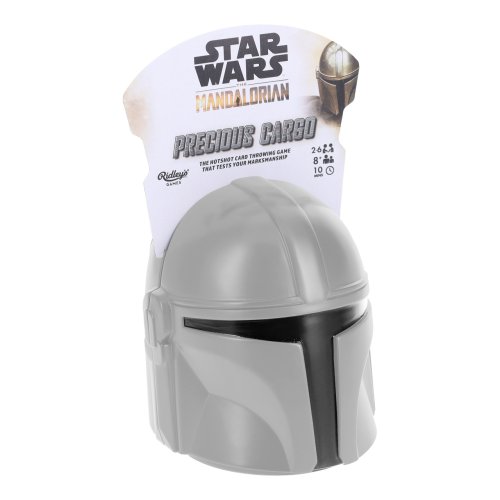 V detailně zpracované helmě známého lovce odměn z předaleké galaxie k Vám přichází jednoduchá a rychlá karetní hra, která prověří Vaši obratnost! Kdo bude mířit stejně přesně jako proslulý Mandalorian a získá nakonec tajemného a roztomilého Grogua? Nechejte se okouzlit atraktivními ilustracemi a zažijte výpravné dobrodružství za doprovodu svých oblíbených hrdinů a předmětů ze série Star Wars! Součástí balení je návod v anglickém jazyce. Hlavní vlastnosti:pro 2–6 hráčůherní doba cca 10 minutpraktické a atraktivní balení Pravidla hry: Před začátkem hry se hráči rozdělí do týmů podle příslušnosti k Mandalorianům, či Impériu a každému z nich připadne jeden vrhací disk s významnou postavou odpovídající strany. Doprostřed stolu se poté umístí disk s Groguem a kolem něj se v dostatečné vzdálenosti rozloží 15 náhodně vybraných karet, a to lícem dolů tak, aby nebyla vidět jejich hodnota. Hráči se poté střídají v hodech a snaží se, aby jejich disk dopadl na kartu, která odpovídá jejich příslušnosti. V případě úspěchu si hráč kartu vezme a ponechá, shora zamíchaného balíčku se přitom na vzniklé prázdné místo doplní další karta. Cílem snažení je získat karty o předem dohodnuté celkové hodnotě, do průběhu přitom mohou nepředvídatelně zasáhnout i karty speciálních akcí. Hráč, který drží karty o smluvené hodnotě, smí usilovat o vítězné získání Grogua. Pokouší se vrhat svůj disk tak, aby přistál na žetonu ve středu hrací plochy – to ovšem není vůbec snadné! Tak nechť Vás provází síla!