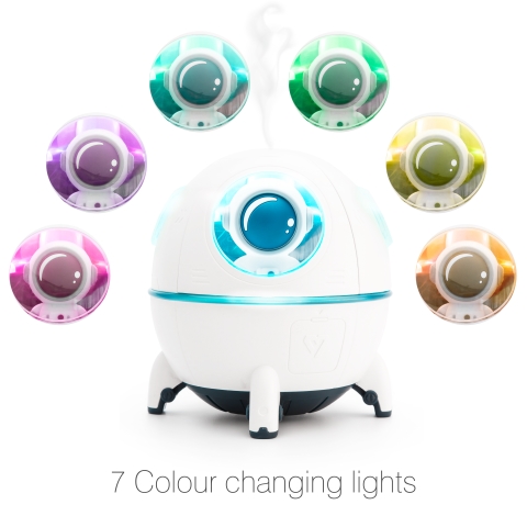 USB dobíjecí difuzér esenciálních olejů 3 v 1 Zvlhčovač vzduchu a noční světlo Ideální pro použití v ložnici Použijte esenciální oleje a zaplavíte místnost uklidňujícími vůněmi Vstřikuje vlhkost do vzduchu a bojuje proti suchu Funkce nočního světla podporuje klidný spánek Kompaktní a přenosný aroma difuzér Roztomilý tvar kosmické lodi s odnímatelným astronautem Objem 220 ml vody a velký objem rozprašovače Několik nastavení světla včetně změny barvy a stálého světla