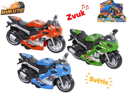 Roadblasters motorka 14,5 cm na setrvačník na baterie se světlem a zvukem - mix barev (zelená, modrá, oranžová)