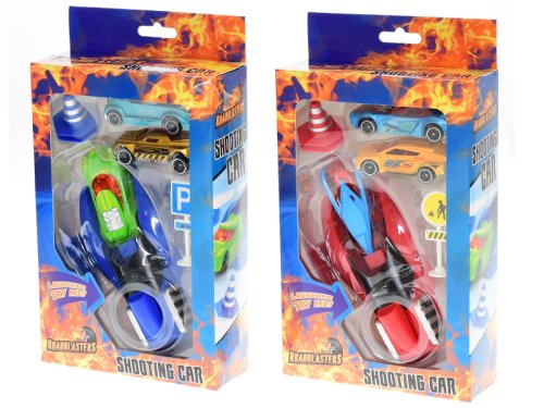 Roadblasters sada aut 6,5 cm 3 ks vystřelovací + dopravní značky - mix barev (červená, modrá)