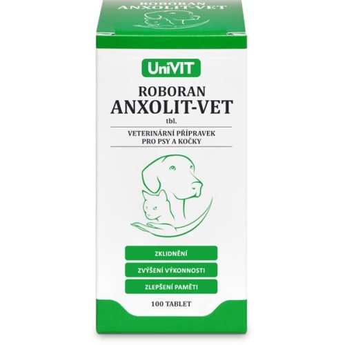 ROBORAN ANXOLIT-VET tbl. je schválený veterinární přípravek, určený k potlačení agresivity, deprese a hyperaktivity u psů a koček. Má zklidňující účinky při stavech úzkosti a pomáhá se vyrovnat s negativními stresovými podněty z okolí. Přípravek se podává při nespecifických stavech neklidu, lekavosti a emocionálním stresu.