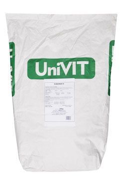 Uhličitan vápenatý, Pšeničná mouka krmná, Hydrogenfosforečnan vápenatý, Lysin, Vitamíny - A, D, B2, B12, Stopové prvky - Železo, Zinek, Měď, Mangan, Jód