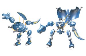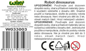 Robot dinosaurus. Rozměry robota 16x6x17 cm, dinosaura 25x6,5x18 cm.