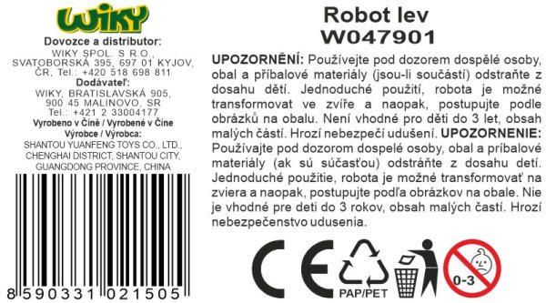 Robot lev Metabeast. Rozměry 15,5x5,5x9,5 cm. 2 varianty - bílá, žlutá. Obsah balení - robot, zbraně. Robot se může složit na lva.