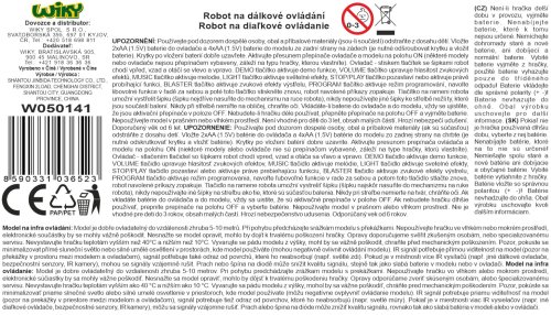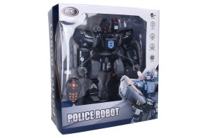 Robot Police střílející s efekty RC na dálkové ovládání 38 cm. Rozměry 31x17x38 cm. Infračervený port. Světelné a zvukové efekty. 4xAA baterie do robota, 2xAA do ovladače nejsou součástí. Součástí 3 šipky. Střelba manuálně tlačítkem na ruce. Ovladač - pohyb všemi směry, demo režim, efekt střelby, světelné efekty, programování, tanec, hudba, nastavení hlasitosti.