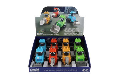 Všichni říkají, že za chvíli nám budou se vším pomáhat roboti a budou kolem nás. Roztomilý jezdící robot se stane oblíbeným kamarádem všech dětí, které mají rády roboty. Robota stačí zmáčknout a rozjede se, je na setrvačník. Rozměry výrobku 8 x 10 x 14 cm. Vhodné pro děti od 3 let.