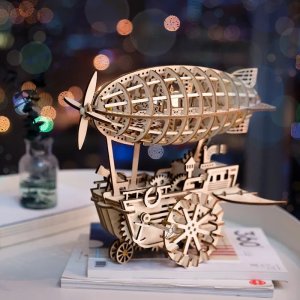Jako z románů Julese Vernea. Stavebnice vzducholodi z překližky. Je vybavená natahovacím pružinovým pohonem, schopná samostatné jízdy. Nabízí originální steampunkový design s velkým množstvím podrobností, z nichž velká část je mechanické povahy, například vrtule. Jedinečný dárek pro všechny milovníky kutilství, luxusní interiérová dekorace do pokoje či kanceláře. Skládačka je dodávána v nesloženém stavu, balena v krabici. Vybaveno detailním návodem k sestavení. Hlavní vlastnosti:229 precizně vyřezaných dílkůvysoká obtížnost sestavenívýsledný model je schopný samostatné jízdymnožství mechanických detailů