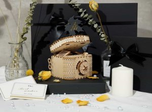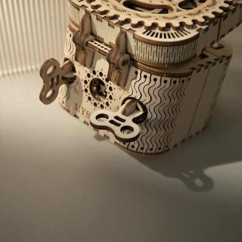 Pro všechny Vaše miláčky. Stavebnice šperkovnice z překližky. Nabízí dvojici přihrádek, méně zabezpečenou ve víku a kódem zajištěnou hlavní přihrádku v těle skříňky. Prostor ve víku lze otevřít pootočením kola na jeho svrchní straně. Hlavní prostor lze zajistit trojmístným kódem, je možno uživatelsky zvolit jednu z mnoha stovek číselných kombinací. K otevření zadejte první číslici otáčením proti směru hodinových ručiček, druhou ve směru opačném, vpravo, a nakonec třetí opět otáčením doleva. Po zadání kódu je nutno ještě zvlášť určeným klíčem prostor otevřít. Jedinečný dárek pro všechny milovníky kutilství, luxusní interiérová dekorace do pokoje či kanceláře. Skládačka je dodávána v nesloženém stavu, balena v krabici. Vybaveno detailním návodem k sestavení. Hlavní vlastnosti:123 precizně vyřezaných dílkůstřední obtížnost sestavenítrojmístný, uživatelsky volený kódúložný prostor