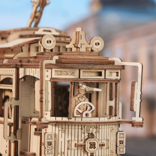 Precizně zpracovaný mechanický model ROBOTIME Rokr slavné lisabonské tramvaje č.28, která je nejstarší kolejovou tramvají v Evropě.