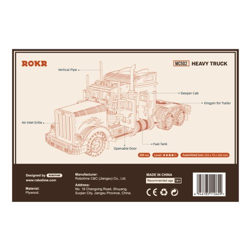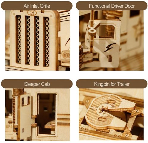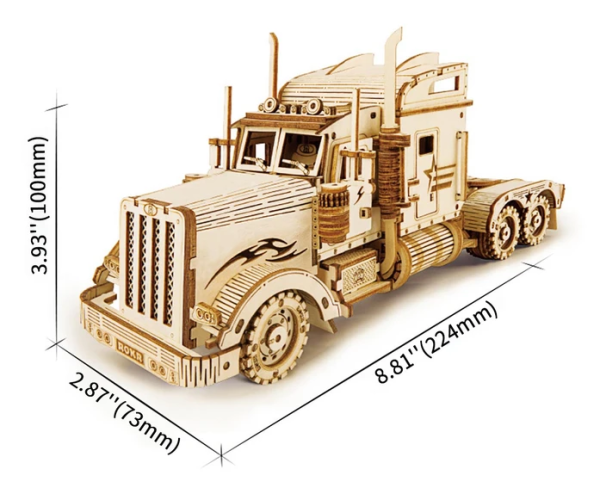 Detailní model amerického tahače v měřítku 1:40 je pohyblivý a vybavený otevíracími dveřmi, může se tak stát nejen atraktivní dekorací, ale i hodnotnou hračkou. Přírodní úprava je univerzálně vhodná do každého interiéru, model však můžete přizpůsobit a nabarvit podle vlastních představ. Nezapomeňte se nám svou úpravou pochlubit! Skládačka je dodávána v krabici spolu s podrobným ilustrovaným návodem k sestavení. Hlavní vlastnosti:286 precizně vyřezaných dílkůstřední obtížnost sestaveníotáčivá kola a otevíratelné dveře