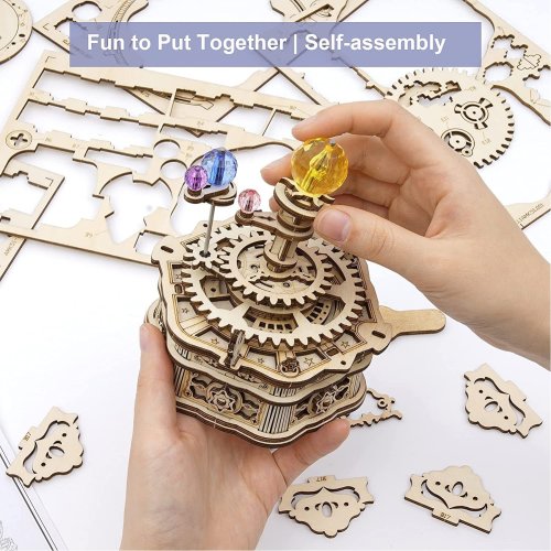 Detailní model jednoho z ranných orlojů, pozorujte pohyb planet. Skládačky hracích skříněk Robotime jsou nabízeny v mnoha podobách, přírodních i barevných, lišících se nápaditými pohyblivými detaily doprovázejícími zvuk. Nezaskočí Vás svou náročností a po sestavení zkrášlí poličku. Nechte se unášet známými melodiemi, každá skříňka hraje jinou, odpovídající své výsledné podobě. Kvalitní natahovací 18 tónové strojky s japonskými komponenty zaručují čistý a dostatečně hlasitý projev. Skládačka je dodávána v nesloženém stavu, balena v krabici. Vybaveno detailním návodem k sestavení. Hlavní vlastnosti:romantická melodie101 precizně vyřezaných dílkůstřední obtížnost sestavení