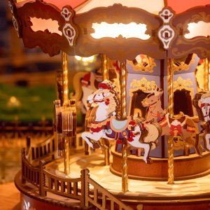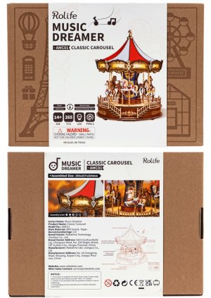 Pamatujete si na pocit bezstarostnosti a nadšení, když jste se točili na kolotoči? Poskládejte si hrací skříňku - klasický kolotoč s červenobílou stříškou a připomeňte si ty šťastné chvíle. Kolotoč je propracován do nejmenších detailů, je poháněn motorkem, točí se a má LED osvětlení. K dokonalé atmosféře přispívají 4 klasické melodie, které navozují pocit klidu a pohody. Hrací skříňka bude jistě jedinečným doplňkem interiéru nebo nevšedním dárkem. Skládání skládačky podporuje rozvoj jemné motoriky, prostorového myšlení a trpělivosti. Je to možnost, jak kombinovat zábavu se vzděláváním. Všechny přesné dílky do sebe lehce zapadnou, aby výsledek byl stabilní a odolný, a to bez použití lepidla. Skládačka je dodávána v nesloženém stavu, zabalená v krabici s podrobným návodem k sestavení. Hlavní vlastnosti: 265 dílkůdoba skládání 4,5 hod2 režimy LED osvětlení2 režimy otáčenínapájecí kabel USB C je součástí balení4 klasické melodie: Menuet D dur, Minuet, Clair de Lune, Nokturno Es dur, op. 9 č. 2sestavení bez použití lepidlavhodné pro děti i dospělérozvíjí logické a motorické dovednostipodporuje trpělivost dětíideální jako dárek nebo jedinečná dekorace