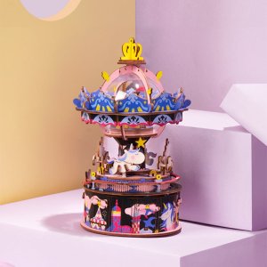Detailní barevný model klasického kolotoče. Skládačky hracích skříněk Robotime jsou nabízeny v mnoha podobách, přírodních i barevných, lišících se nápaditými pohyblivými detaily doprovázejícími zvuk. Nezaskočí Vás svou náročností a po sestavení zkrášlí poličku. Nechte se unášet známými melodiemi, každá skříňka hraje jinou, odpovídající své výsledné podobě. Kvalitní natahovací 18 tónové strojky s japonskými komponenty zaručují čistý a dostatečně hlasitý projev. Skládačka je dodávána v nesloženém stavu, balena v krabici. Vybaveno detailním návodem k sestavení. Hlavní vlastnosti:melodie It's A Small World174 precizně vyřezaných potištěných dílkůstřední obtížnost sestavení
