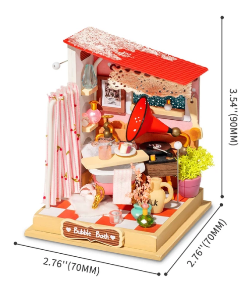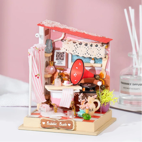 Není nad pořádnou koupel, obláčky mydlinek při svíčkách a hudbě? Objevte svět detailních miniatur Robotime přicházejících v podobě jedinečných výtvarných stavebnic. Při jejich sestavování strávíte příjemné chvíle a výsledkem můžete zkrášlit zákoutí svého pokoje. Výtvarné sady jsou rozděleny hned do několika různých řad a tvoří výjimečně pestrou nabídku. Je Vám bližší obytný prostor, podnik, nebo něco jiného? Snadno si vyberete! Každá ze stavebnic je dodávána v rozloženém stavu. Stavba zahrnuje převážně barvení a lepení již nařezaných dílů z překližky, přípravu kartonových nebo látkových prvků a papírových potisků. V balení spolu se všemi součástmi a podrobným návodem naleznete lepidlo, barvy, štětec i jiné nástroje. K pohodlné stavbě doporučujeme přichystat si půlkulaté kleště. Zpravidla si při sestavování a úpravách ale vystačíte s obyčejnými nůžkami, které doma jistě vždy najdete. Hlavní vlastnosti:obsahuje díly stavebnice, lepidlo, barvy, štětec aj.odhadovaná doba sestavení 5 hodinstavba vyžaduje vlastní nůžky a může obnášet i použití dalšího drobného nářadí