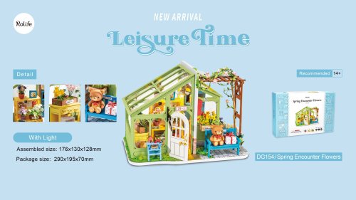 Vezměte jarní barvy a vůně s sebou na schůzku, vybírejte z květin i drobných dárků. Objevte svět detailních miniatur Robotime přicházejících v podobě jedinečných výtvarných stavebnic. Při jejich sestavování strávíte příjemné chvíle a výsledkem můžete zkrášlit zákoutí svého pokoje. Téměř každá souprava je vybavena LED osvětlením, které spolu s barevností výsledného modelu vykouzlí útulnou atmosféru. Výtvarné sady jsou rozděleny hned do několika různých řad a tvoří výjimečně pestrou nabídku. Je Vám bližší obytný prostor, podnik, nebo něco jiného? Snadno si vyberete! Každá ze stavebnic je dodávána v rozloženém stavu. Stavba zahrnuje převážně barvení a lepení již nařezaných dílů z překližky, přípravu kartonových nebo látkových prvků a papírových potisků. V balení spolu se všemi součástmi a podrobným návodem naleznete lepidlo, barvy, štětec i jiné nástroje. K pohodlné vestavbě osvětlení doporučujeme přichystat si půlkulaté kleště. Zpravidla si při sestavování a úpravách ale vystačíte s obyčejnými nůžkami, které doma jistě vždy najdete. Hlavní vlastnosti:obsahuje díly stavebnice, lepidlo, barvy, štětec aj.odhadovaná doba sestavení 12 hodinLED osvětlení (2×CR2032 baterie jsou součástí balení)stavba vyžaduje vlastní nůžky a může obnášet i použití dalšího drobného nářadí