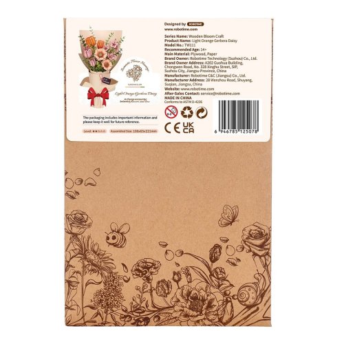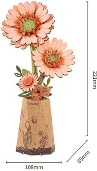 Zpestřete si každodenní život květinami a darujte skládačku oranžové gerbery jako symbol lásky a přátelství. Gerbery jsou květinami radosti, nevinnosti a čistoty. Na rozdíl od živých květin Vám tyto květiny nezvadnou a budou navždy připomínat společné zážitky a vzácné chvíle strávené s těmi, na kterých Vám záleží. Každý květ je vytvořen tak, aby zachytil podstatu skutečných květin. Ať už hledáte originální dárek pro narozeniny, výročí, Valentýna nebo jen chcete někomu vykouzlit úsměv, tato dřevěná gerbera je výjimečnou volbou. Díky své trvanlivosti a detailnímu zpracování se stane krásnou dekorací, která nevadne. 3D skládačka je skvělý způsob, jak si užít kreativní a edukativní hraní a zároveň vytvořit nádherný model květiny, který se může stát netradičním dárkem či ozdobou Vašeho domova či kanceláře. Skládání podporuje rozvoj jemné motoriky, prostorového myšlení a trpělivosti. Je to možnost, jak kombinovat zábavu se vzděláváním. Skládačka je dodávána v nesloženém stavu, zabalená v krabici s podrobným návodem k sestavení. Hlavní vlastnosti: 132 dílkůdoba skládání 20 minutnízká obtížnost sestavení bez použití lepidlavýjimečný a realistický vzhledvhodné pro děti i dospělérozvíjí logické a motorické dovednostipodporuje trpělivost dětíideální dárek nebo jedinečná dekorace