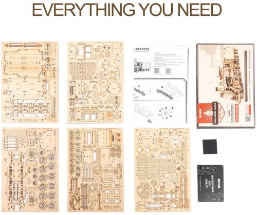 Propracovaný model parní lokomotivy v měřítku 1:80 je určen všem fanouškům techniky a období vrcholící průmyslové revoluce. Součástí stavebnice je rovněž tendr nabízející drobný úložný prostor pro upomínkové předměty, či cennosti. Sestavená miniatura je určena k vystavení a dekoraci, není proto pohyblivá. Přírodní úprava je univerzálně vhodná do každého interiéru, model však můžete přizpůsobit a nabarvit podle vlastních představ. Nezapomeňte se nám svou úpravou pochlubit! Skládačka je dodávána v krabici spolu s podrobným ilustrovaným návodem k sestavení. Hlavní vlastnosti:308 precizně vyřezaných dílkůstřední obtížnost sestavenídrobný úložný prostor