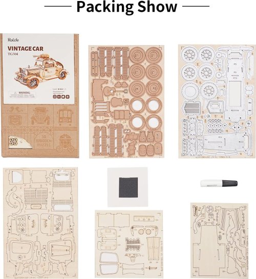 Detailní model klasického dvoudvéřového kupé. Patří do řady skládaček, které jsou určeny k vystavení, nejsou interaktivní a nemají žádné pohyblivé díly. Skládačka je dodávána v nesloženém stavu, balena v krabici. Vybaveno detailním návodem k sestavení. Hlavní vlastnosti:164 precizně vyřezaných dílkůstřední obtížnost sestavení