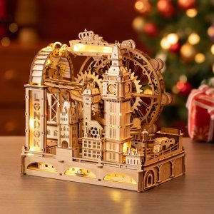 Připravte se na dynamickou prohlídku britské metropole, aniž byste museli opustit svůj pokoj, s tímto mechanickým zázrakem - 3D dřevěnou skládačkou a kuličkovou dráhou Londýn. Tento detailně zpracovaný model vás provede ikonickými londýnskými památkami díky preciznímu inženýrství a promyšlené mechanice. Během stavby i následného provozu se setkáte s miniaturami Big Benu, Tower Bridge či London Eye. Překročíte Temži, nastoupíte do dvoupatrového autobusu nebo metra a během okamžiku dorazíte do cíle, zatímco kovové kuličky sviští rampami, spirálami a tunely, poháněné kombinací gravitace a vestavěného USB-C motoru. Nechybí ani hravé detaily, včetně korunovačních klenotů, které se objeví bez rizika spuštění královského alarmu. Stavebnice obsahuje 431 precizně laserem vyřezaných dílů, které do sebe přesně zapadají a zaručují uspokojivou a obohacující stavbu. Po sestavení se model promění v plynule fungující kuličkovou dráhu, která je nejen zábavná, ale také působí jako originální mechanická dekorace. Hra je živá a nepřetržitá - na čaj se zastavíte až ve chvíli, kdy dráhu vypnete. Do té doby si můžete Londýn projet znovu a znovu, pokaždé z jiného úhlu. Hlavní vlastnosti: 431 přesných dílkůdoba sestavení 5 hodintěžká úroveň obtížnostibez použití lepidlarozvíjí logické a motorické dovednostipodporuje trpělivostLED osvětleník napájení slouží USB-C kabel, není součástí baleníobsahuje podrobný návod k sestavení