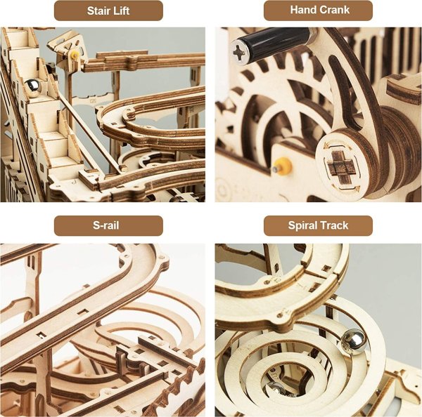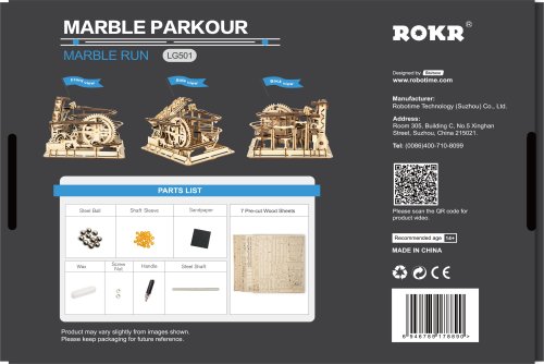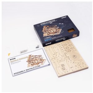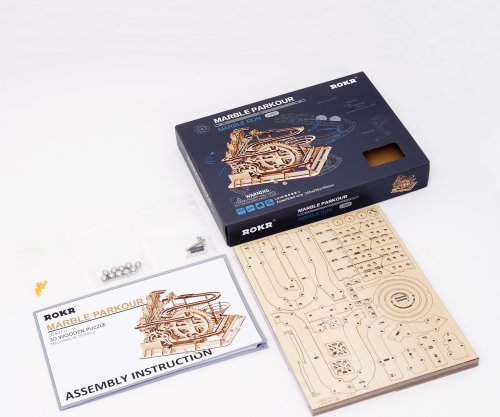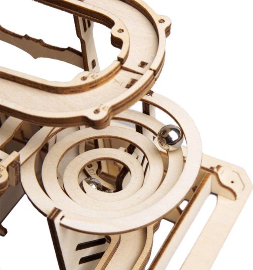 Kuličková dráha se schodišťovým výtahem a velkou spirálou. Skládačky kuličkových drah Robotime nabízejí jinde nevídané podrobnosti a variabilitu. Každá se může pyšnit originálními funkčními detaily a roztodivnými překážkami, které často nápaditě změní dráhu kuličky, a přinášejí tak výjimečnou zábavu. Mechanika je poháněna ručním pohonem, otáčením klikou, kterým jsou také vynášeny a na cestu pravidelně spouštěny kuličky. Skládačka je dodávána v nesloženém stavu, balena v krabici. Vybaveno detailním návodem k sestavení. Hlavní vlastnosti:skládačka dráhy a 10 kuliček233 precizně vyřezaných dílkůstřední obtížnost sestavení