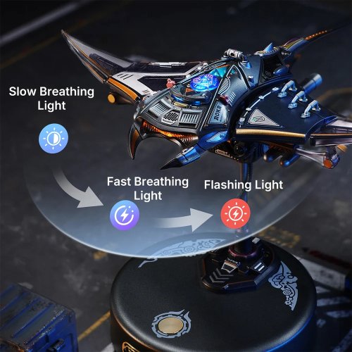 Manta rejnoka je 3D mechanické puzzle, které vás zve k tomu, abyste byli svědky tohoto fascinujícího pohybu zblízka. Tato replika manty vnese do vašeho interiéru eleganci a kouzlo mořského života. Tento miniaturní 3D model si sestavíte sami a výsledek vás okouzlí nejen pohybem, ale i světlem a atmosférou. Díky charakteristickému šípovému vzoru a plynulému pohybu ploutví model zachycuje zdánlivou beztížnou eleganci skutečné manty. Přiložený podstavec model zvedne a stiskem tlačítka se prsní ploutve začnou hladce kývat, ocas jemně kymácí a LED světla pulzují v rytmu pohybu. Druhým stiskem se spustí rychle blikající a ploutvemi zrychlující režim „Burst Mode“, který napodobuje náhlý nárůst rychlosti manty. Tento model je fascinující kombinací technické preciznosti a krásy mořského života. Skvěle se hodí jako dekorace, designový doplněk nebo originální dárek pro milovníky přírody a mechanických modelů. Hlavní vlastnosti: 108 dílkůdoba skládání 2 hodinymechanický pohyb ploutví a ocasuLED světla pulzijící v rytmu pohybupodstavec pro vystavenístřední obtížnost sestavenívýjimečný a realistický vzhledvhodné pro děti i dospělérozvíjí logické a motorické dovednostipodporuje trpělivost dětíideální dárek nebo jedinečná dekoracek napájení slouží 3x baterie AAA (nejsou součástí balení)