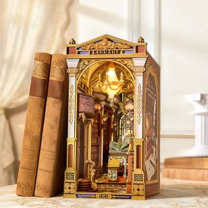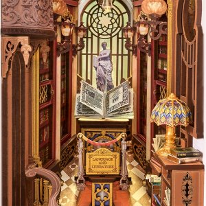 Zažijte kouzlo Knihovny divů, jedinečného knižního koutku, který vás přenese do světa goticko-viktoriánské elegance. Tento detailně propracovaný model kombinuje viktoriánskou architekturu, římské sloupy, klasické sochy, vzácné artefakty a řady starožitných knih, čímž vytváří dojem tajemného archivu bohů.Impozantní klenutá brána vás zve do prostoru plného nejen knih, ale i uměleckých detailů a bohaté výzdoby. Pod vysokým, zlatem zdobeným klenutým stropem se tyčí římské sloupy, zatímco červené dřevěné knihovny zaplňují každý kout. Balkon s výhledem na schodiště se zdobeným zábradlím je osvětlen svítícím lustrem a teplými závěsnými světly, která dodávají scéně útulnou atmosféru. Na vzdáleném konci haly se nacházejí klenutá okna s jemnou kružbou a uprostřed prostoru stojí mahagonový pult s otevřenou knihou plnou kaligrafie. Čtenářský koutek je zakončen střechou ve viktoriánském stylu a bočními panely inspirovanými pevnou knižní vazbou, které plynule navazují na okolní knihovny. Knihovna divů je ideální dekorací pro milovníky knih, historie a kreativního tvoření - okouzlující detail, který promění každou knihovnu v malé umělecké dílo. 3D skládačka je skvělý způsob, jak si užít kreativní a edukativní hraní a zároveň vytvořit nádherný model, který se může stát netradičním dárkem či ozdobou interiéru. Skládání 3D skládačky podporuje rozvoj jemné motoriky, prostorového myšlení a trpělivosti. Je to možnost, jak kombinovat zábavu se vzděláváním. Všechny přesně vyřezané dílky do sebe lehce zapadnou bez použití lepidla či nástrojů, aby výsledek byl stabilní a odolný. Skládačka je dodávána v nesloženém stavu, zabalená v krabici s podrobným návodem k sestavení. K napájení slouží 2x AAA /LR03/AM4 1,5 V (nejsou součástí balení). Hlavní vlastnosti: 258 dílkůdoba skládání 5 hodinvysoká obtížnost sestavení LED osvětlenísestavení bez použití lepidla a nástrojů výjimečný vzhledvhodné pro děti i dospělérozvíjí logické a motorické dovednostipodporuje trpělivost dětíideální dárek nebo jedinečná dekoracenapájení pomocí 2 baterií AAA /LR03/AM4 1,5 V (nejsou součástí balení)