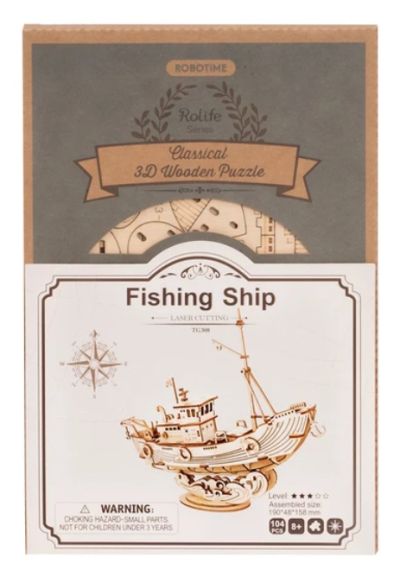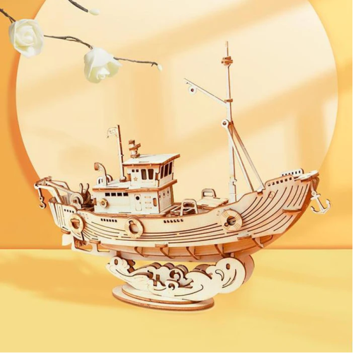 Detailní model rybářské lodě. Patří do řady skládaček, které jsou určeny k vystavení, nejsou interaktivní a nemají žádné pohyblivé díly. Skládačka je dodávána v nesloženém stavu, balena v krabici. Vybaveno detailním návodem k sestavení. Hlavní vlastnosti:104 precizně vyřezaných dílkůnízká obtížnost sestavení