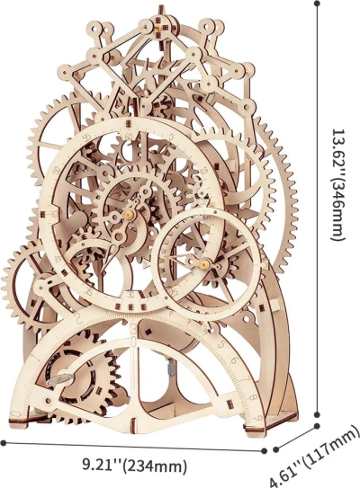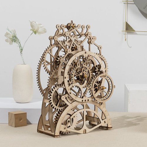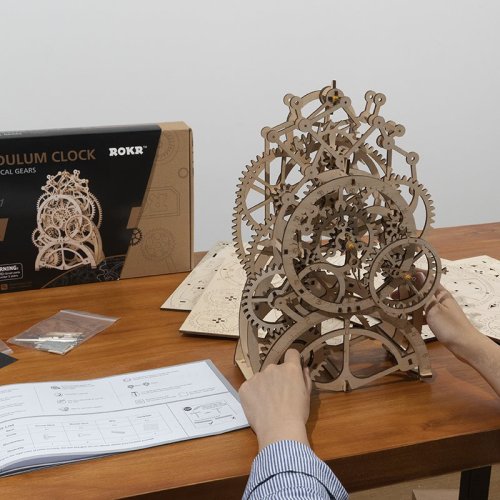 Natahovací kyvadlové hodiny Robotime s mechanickými převody pro dokonalý zážitek ze stavění. Sestavte všechny díly a mechanismy dohromady a sledujte, jak fungují.