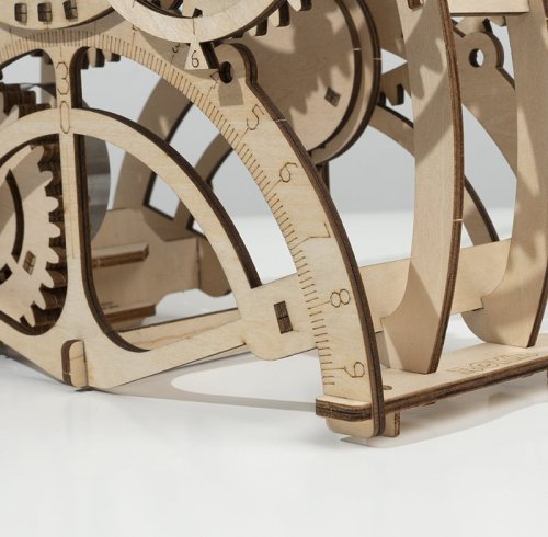 Skutečné natahovací hodiny s pružinovým pohonem na klíček. 3D dřevěná puzzle sada s mechanickými převody. Gravitační kyvadlo s přesným krokovacím ústrojím. Po natažení fungují až 3 hodiny. Laserem předřezané dílky z kvalitní lipové překližky pro stavbu svépomocí, lepidlo není potřeba. Rozvíjí technické myšlení, představivost, cit pro detail a jemnou motoriku. Přehledný obrázkový návod krok za krokem, včetně QR kódů pro zobrazení videonávodu.