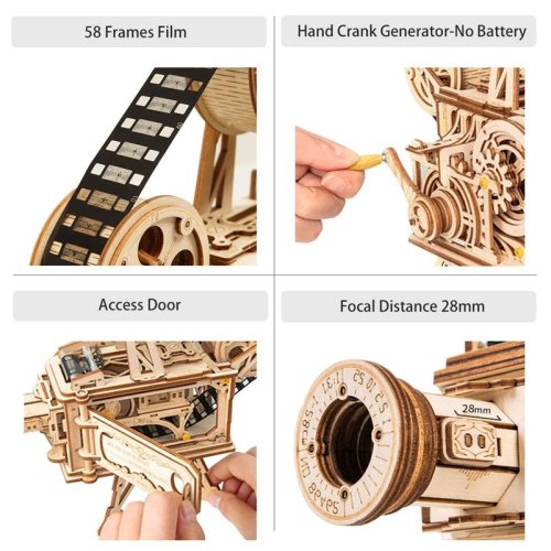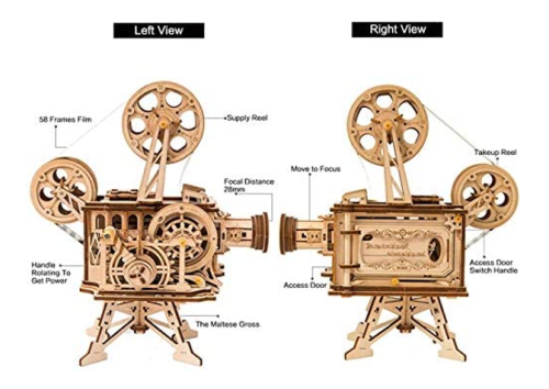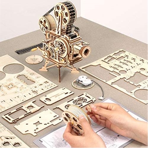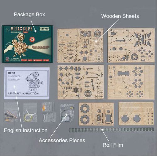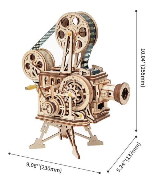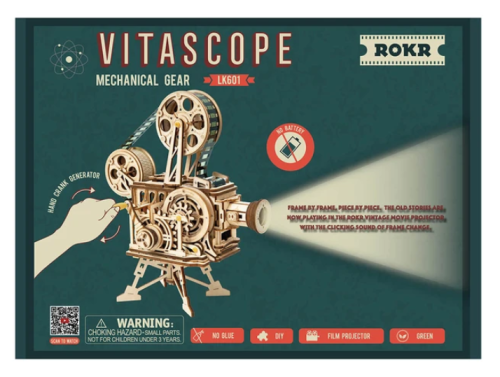Robotime-ROKR DIY filmový projektor Vita scope LK601 dokáže skutečně přehrát film! Klasický design s ručním klikovým generátorem uspokojí milovníky filmů při výrobě i hraní. Sestavte mechanismus kousek po kousku a nasaďte černobílý film. Užijte si kino společně s přáteli a rodinou!