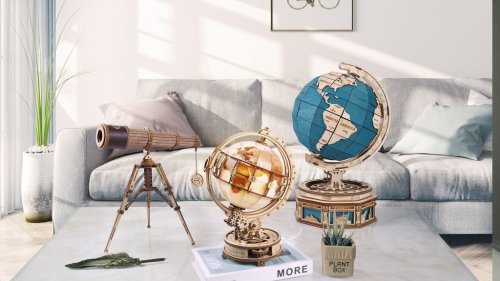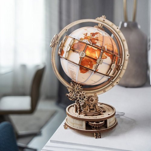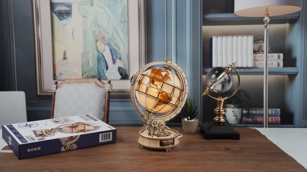 Robotime-ROKR svítící Globus je dřevěný mechanický model zeměkoule v klasickém stylu ze série Curious Discovery.