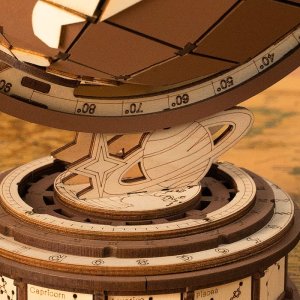 3D dřevěné puzzle glóbus s divy světa a astronomickými hodinami