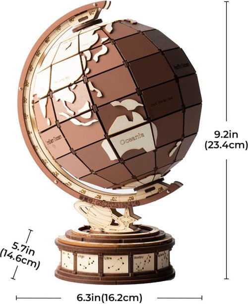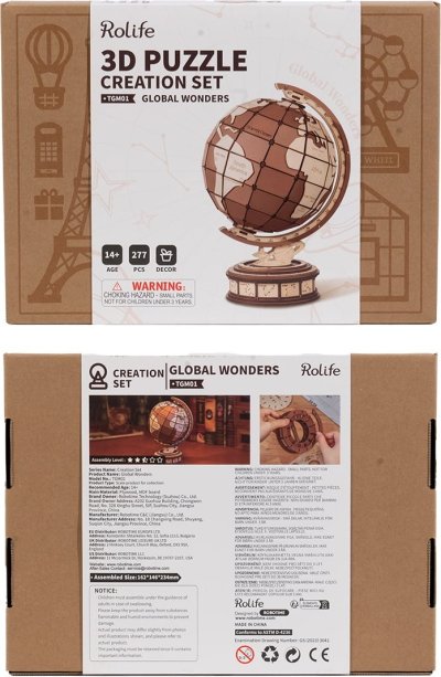 Objevte krásy světa s Rolife Global Wonders 3D dřevěným puzzle! Toto jedinečné 3D puzzle vám umožní sestavit detailní glóbus zobrazující slavné divy světa – od přírodních úkazů po ikonické památky vytvořené člověkem. Snadno identifikujte známá místa na všech kontinentech a užijte si zábavu při skládání. Skrytým klenotem tohoto puzzle jsou astronomické hodiny inspirované historickým artefaktem ze Staroměstské radnice v Praze. Na základně glóbu najdete otočné astronomické, kalendářní a zvěrokruhové kotouče, které dodávají tomuto dekorativnímu prvku jedinečný charakter. Tento 3D dřevěný glóbus není jen krásnou dekorací, ale také vzdělávací pomůckou. Pomáhá rozšiřovat znalosti o světě a inspiruje k cestování. Perfektní doplněk do domova nebo kanceláře, který spojuje historii, umění a geografii v jednom.