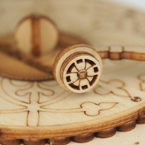 Laserem vyřezávané dílky z 2 mm lipové překližky. Jednotlivé dílky se vytlačují přímo z překližky, postupujte posloupně a opatrně. Kvalitní, bezpečné a netoxické materiály. Rozvíjí technické myšlení, představivost, cit pro detail a jemnou motoriku. Překrásný dárek pro větší děti i dospělé. Po dokončení působivá dekorace.