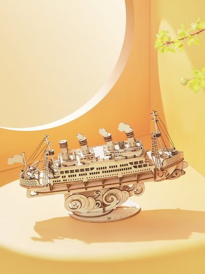 Dřevěný model výletního plavidla s praktickým stojánkem.