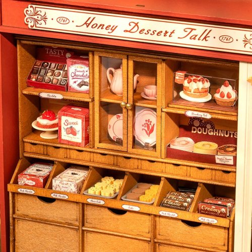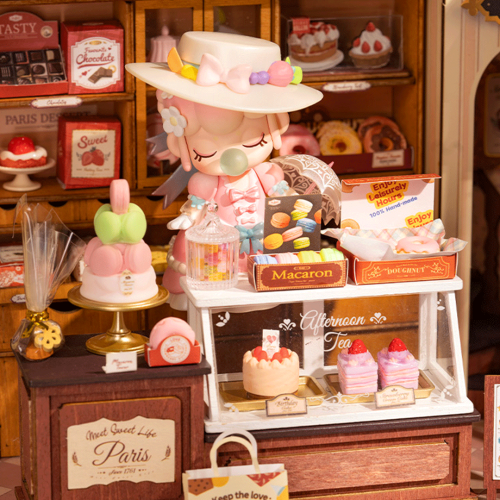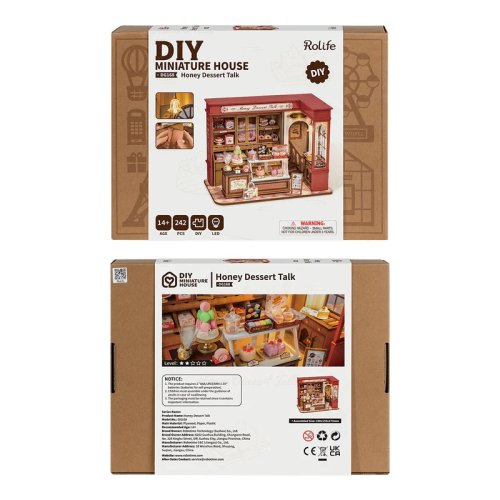 Je čas na něco sladkého! Vyberte si z vynikajících dezertů z nabídky útulné francouzské cukrárny, které jsou vystavené v dřevěných policích nebo skleněné vitríně. Nabídka je široká. Máte chuť na makronky, máslové sušenky, dortíky, čokoládu nebo donuty? Nebo si raději dáte čaj či kávu? V dóze jsou připraveny dokonce gumové bonbóny pro malé mlsouny! Dvířka skříněk jsou otevírací, takže si můžete zboží vystavit podle svého přání. Vychutnejte si atmosféru klidu a pohody, která je umocněna příjemným LED osvětlením. 3D skládačka je skvělý způsob, jak si užít kreativní a edukativní hraní a zároveň vytvořit nádherný model, který se může stát netradičním dárkem či ozdobou interiéru. Skládání 3D skládačky podporuje rozvoj jemné motoriky, prostorového myšlení a trpělivosti. Je to možnost, jak kombinovat zábavu se vzděláváním. Všechny přesně vyřezané dílky do sebe lehce zapadnou bez použití lepidla či nástrojů, aby výsledek byl stabilní a odolný. Skládačka je dodávána v nesloženém stavu, zabalená v krabici s podrobným návodem k sestavení. K napájení slouží 2x AAA /LR03/AM4 1,5 V (nejsou součástí balení). Hlavní vlastnosti: 242 dílkůdoba skládání 4 hodstřední obtížnost sestaveníLED osvětlenísestavení bez použití lepidla a nástrojůvýjimečný vzhledvhodné pro děti i dospělérozvíjí logické a motorické dovednostipodporuje trpělivost dětíideální jako dárek nebo jedinečná dekoracenapájení pomocí 2x AAA /LR03/AM4 1,5 V (nejsou součástí balení)