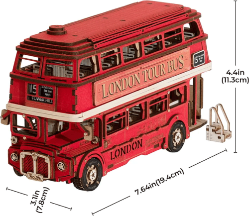 A jak jinak než na palubě vyhlídkového červeného patrového autobusu. Londýnský double-decker je úzce spjat s historií města a je oblíbený nejen u jeho obyvatel ale také u turistů. 3D model je zpracován do nejmenších detailů počínaje vintage provedením přední části, otočnými koly, plně vybaveným interiérem a zářivou červenou barvou. Má dokonce samostatné schůdky pro pohodlný nástup a otevřenou zadní plošinu. Prohlédněte si rušné ulice Soho, historické uličky Westminsteru nebo bulváry Kensingtonu. Skládání 3D skládačky podporuje rozvoj jemné motoriky, prostorového myšlení a trpělivosti. Pozvěte svou rodinu nebo přátele a užijte si zábavné tvoření bez nutnosti použití lepidla nebo nástrojů. Všechny díly skládačky jsou přesně vyřezané a očíslované a lehce do sebe zapadnou, aby výsledek byl stabilní a odolný. Skládačka je dodávána v nesloženém stavu, zabalená v krabici s podrobným návodem k sestavení.
