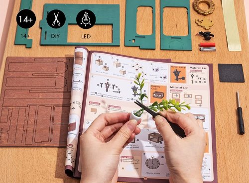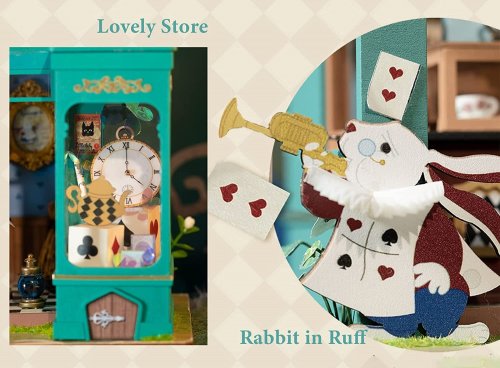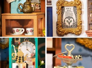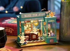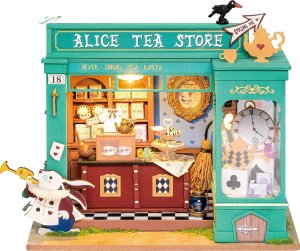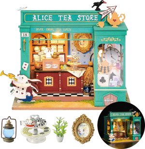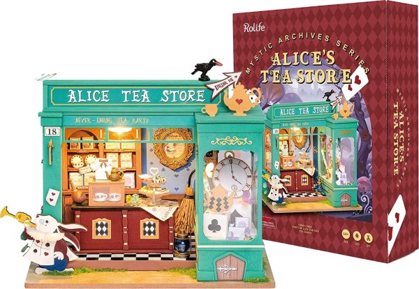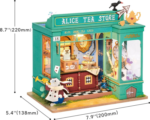 Řada ROBOTIME ROLIFE Do It Yourself Miniature - Mystic Archives představuje zmenšené modely místností, pokojů, domů i zahrádek. Vlastníma rukama tak vykouzlíte úžasná díla s desítkami miniaturních detailů. Užijte si hodiny tvoření a kochejte se překrásným výsledkem. Rolife Alice's Tea Store je miniaturní domek ve stylu DIY ze série Mystic Archives. Všichni známe příběh Alenky v říši divů. Designérka z něj vytěžila nejznámější prvky světa Říše divů: Pan Králík, vrány, kapesní hodinky a šachovnicové dlaždice, aby vytvořila bohatou scénu odpoledního čaje v evropském stylu. Součástí výrobku jsou také drobnosti, jako je nádherný porcelán, zákusky, kouzelná košťata a další dekorace, které dělají model bohatší a zajímavější. Pozvěte své přátele a rodinu a pojďte si postavit tento úžasný obchod. Veškerý nábytek a doplňky zobrazené na obrázku je třeba udělat svépomocí (včetně řezání, sestavování a lepení).