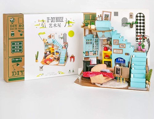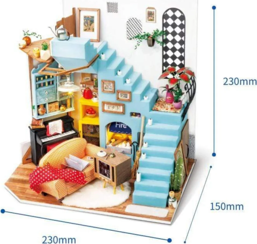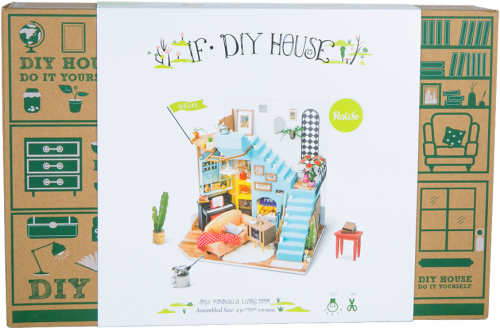 Řada ROBOTIME ROLIFE Do It Yourself Miniature - Mediterranean Style představuje zmenšené modely místností, pokojů, domů i zahrádek. Vlastníma rukama tak vykouzlíte úžasná díla s desítkami miniaturních detailů. Užijte si hodiny tvoření a kochejte se překrásným výsledkem. Obývací pokoj Joy's Peninsula je miniaturní domek ve středomořském stylu s vnitřním schodištěm. Díky útulné pohovce a krbu si můžete postavit ideální obývací pokoj s vyhlídkou. Veškerý nábytek a doplňky zobrazené na obrázku je třeba udělat svépomocí (včetně řezání, sestavování a lepení).