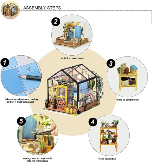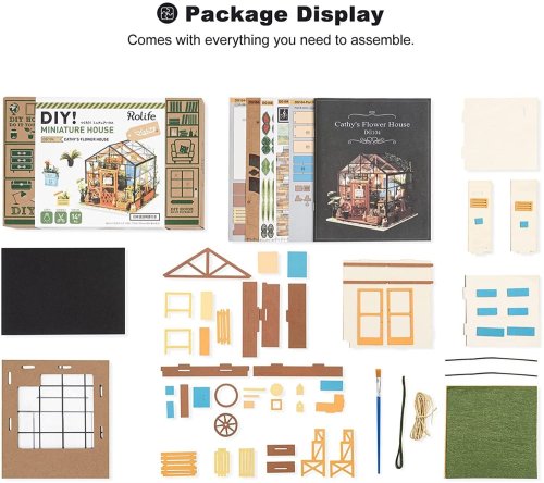 Řada ROBOTIME ROLIFE Do It Yourself Miniature představuje zmenšené modely místností, pokojů, domů i zahrádek. Vlastníma rukama tak vykouzlíte úžasná díla s desítkami miniaturních detailů. Užijte si hodiny tvoření a kochejte se překrásným výsledkem. Všechny potřebné nástroje jsou součástí balení, jediné, co potřebujete, je váš čas a trpělivost, protože veškerý nábytek a doplňky zobrazené na obrázku je třeba udělat svépomocí (včetně řezání, sestavování a lepení), což zabere hodně času.
