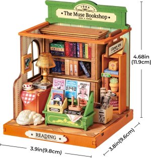 Každý prvek – obálky knih, vývěsní štít, dřevěné regály, novinová bedýnka, stolní lampička i podlaha s linoleem – přispívá k realistickému vzhledu, který z tohoto modelu dělá opravdovou miniaturu života.