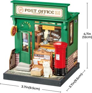 V době před e-maily a chaty byla pošta srdcem každého města či vesnice – místem, které udržovalo spojení mezi lidmi, šířilo zprávy a vytvářelo komunity. Propracovaný model s realistickými detaily: klasické poštovní cedule, nápisy na oknech, psací stroj, balíčky s leteckou poštou, novinový stojan, poštovní schránku a stůl poštmistra. Nechybí ani cihlové zdobení, schodiště a roztomilá kočka, které dotvářejí útulnou atmosféru maloměstského života. Obtížnost: 1 z 5 (dle rozdělení Robotime). Orientační doba na složení: 1,5 hodiny.