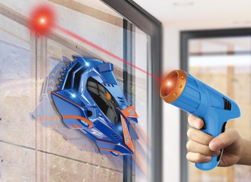 Autíčko pronásleduje laser a dokáže jezdit po stěnách i po stropě.