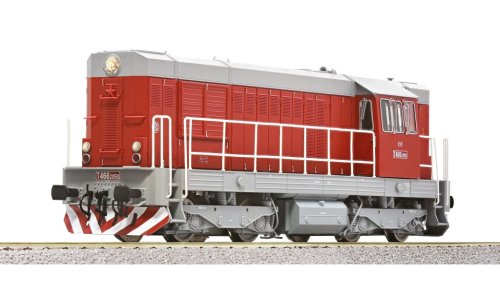 Motorová lokomotiva Československých státních drah T 466 2050. Nový design! Verze 1. série s hladkou boční stěnou kabiny. Detailně propracovaný model s mnoha samostatně použitelnými zásuvnými díly. Přehledný pohled do kabiny strojvedoucího. Filigránové bezpečnostní zábradlí. Sady kol s nízkými přírubami kol. Instalované osvětlení kabiny řidiče. V 70. letech 20. století měly bývalé Československé státní dráhy (ČSD) velmi potřebovaly výkonné nákladní vlakové dieselové lokomotivy pro středně těžké posunovací a traťové služby. Z průmyslové lokomotivy typu T 448 byla proto odvozena lehčí varianta T 466.2. Vyráběla se v ČKD v Praze od roku 1977 v devíti sériích (každá s drobnými odlišnostmi) v počtu 494 kusů a ČSD ji nasazovaly do provozu až do roku 1986. Hlavní vlastnosti: spojka hřídel NEM 362 s kinematikou KKminimální poloměr 358 mmdélka přes vyrovnávací paměť 156 mmdráha H0epocha IV3 světlomety/2 koncová světla, v závislosti na směru jízdyLED světlomet ANOsystém napájení: 2L stejnosměrný proudpočet hnaných náprav 4počet náprav s trakčními pneumatikami 1elektrické rozhraní por lokomotivy PluX22 Dokumenty: návod k obsluze (DE)obecný dodatek (DE) list náshradních dílů (DE)