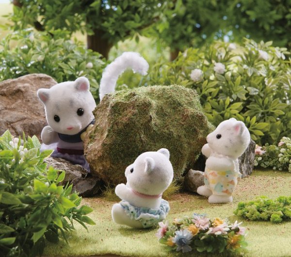 Poznejte rodinu sněžných levhartů Sylvanian Families. Sada obsahuje 4 roztomilé figurky rodiny sněžných levhartů pokryté měkkým semišem. Tato sada obsahuje tatínka, maminku, dvě dcery a doplňky v podobě sněžného skútru a jednoho páru lyží. Rodiče sněžných levhartů mají charakteristický dlouhý ocas. Celá rodinka má oblečení v jemných pastelových barvách. Táta Gerald miluje rybaření u jezera Kira a zároveň se rád dívá na hory.