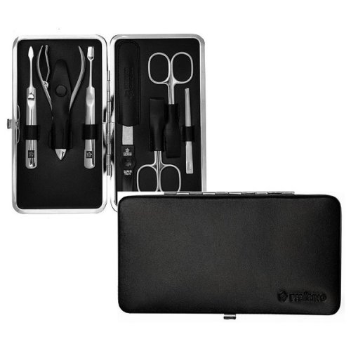 Rodinná sedmidílná manikúrová sada Pfeilring Solingen je vyrobena z nappa kůže.