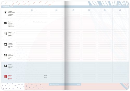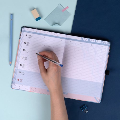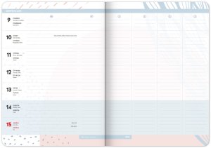 Praktický diář je pomocníkem pro plánování aktivit rodiny a chodu domácnosti. Rozdělen je do týdenních cyklů, ve kterých můžete sledovat a zapisovat úkoly jednotlivých rodinných příslušníků do připravených sloupců. Nechybí rovněž rozvrh hodin pro školáky, seznamy na nákup a prostor pro všechny důležité poznámky.