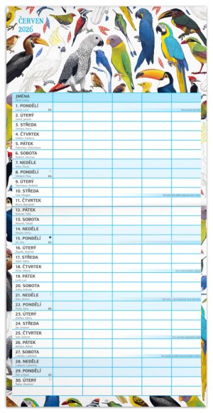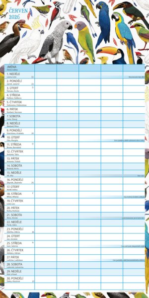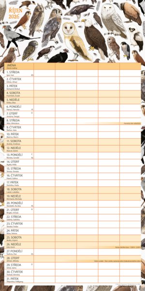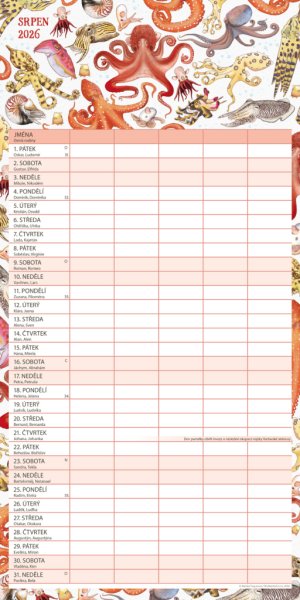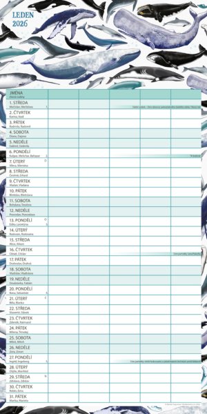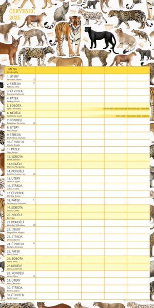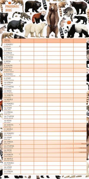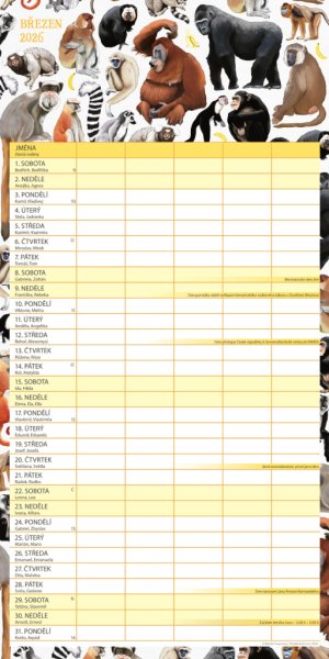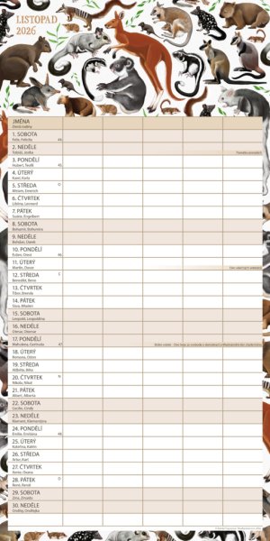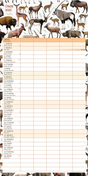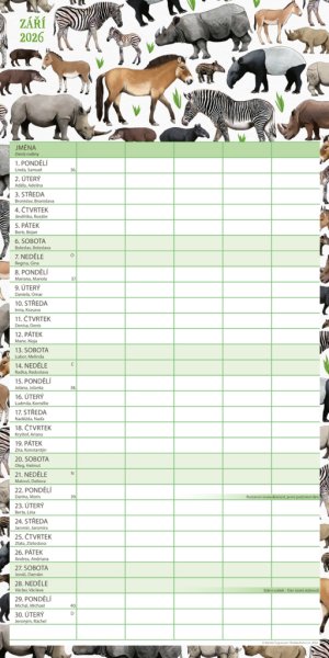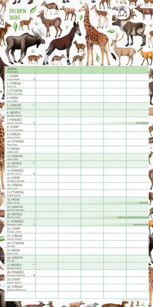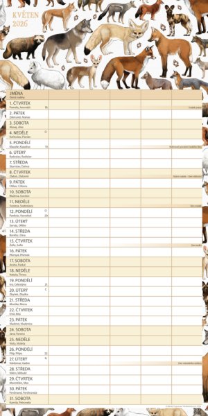 České kalendárium a samostatný plánovač aktivit až pro pět členů domácnosti doplňují krásné ilustrace zvířat. Nechybí státní svátky ani měsíční fáze.